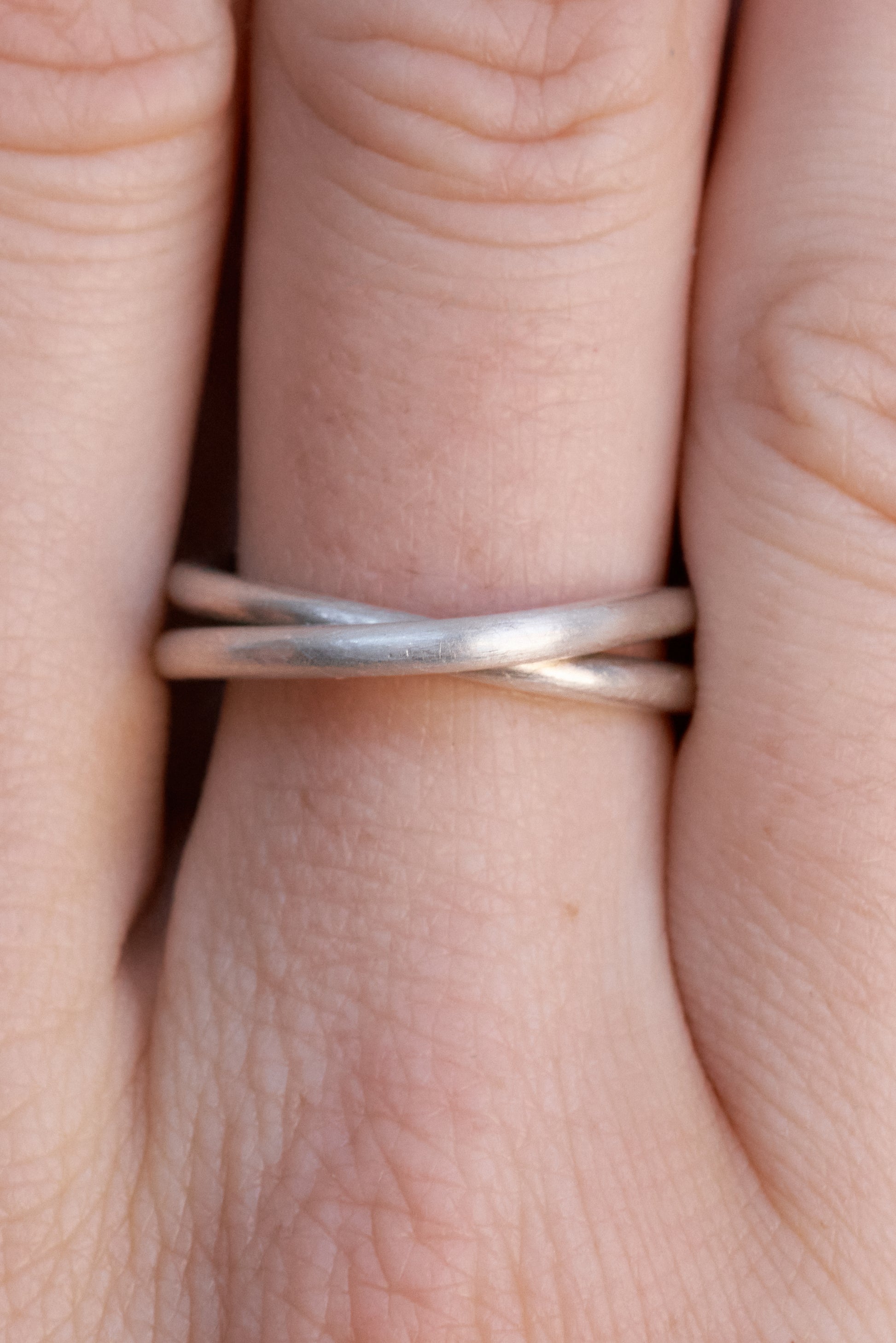 Ring Nr. 24 ist ein 2 mm breiter Ring aus edlem 925er Silber. Das Besondere an diesem AHØ Ring ist seine überlappende, nicht ganz runde Form, die durch das kunstvolle Wickeln des Rings um sich selbst entsteht. Diese einzigartige Form verleiht dem Ring einen modernen, dynamischen Look, der sowohl alleine als auch in Kombination mit weiteren AHØ Ringen getragen werden kann.